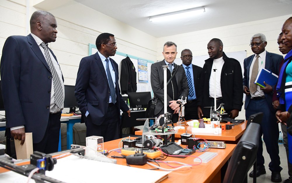 The team from the Embassy including, Dr. Mathieu Guerin- France Attaché for Science and Higher Education and Deputy Head of Cooperation in Kenya, Denis Sainte – Marie, Attaché Counselor for cooperation and Cultural Affairs, Mr. Benard Clouteau- Attaché Linguistic Cooperation explored further joint collaboration with TU-K. The Ag. VC-Prof. Paul Shiundu, DVC-RTD, Prof. Isaac Orina, DVC- IAE, Prof. Paul Wambua, Executive Dean-FSST, Prof. Peter Matu, Executive Dean –FAST, Prof. Francis Gatheri, Executive Dean-FEBE, Prof. Edwin Ataro, Prof. Benard Odera- Director, CEP-TF and ATL-DMCL, Dr. Teresa A. Otieno. Also present were students who have benefited from the collaboration.