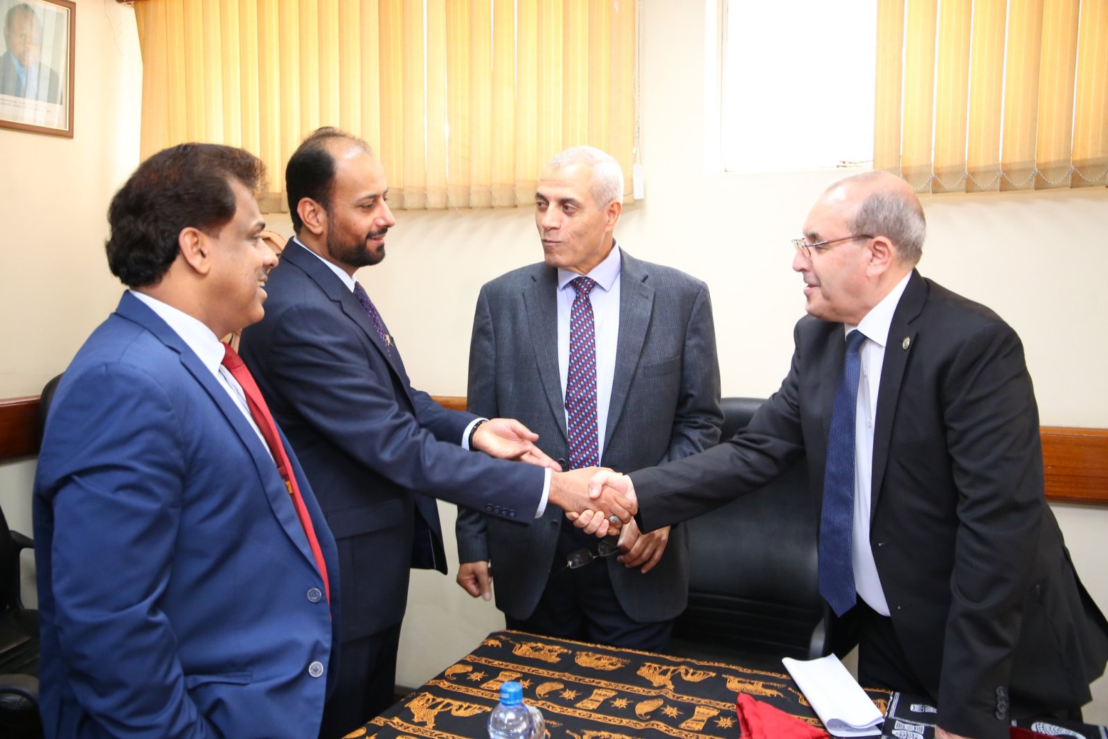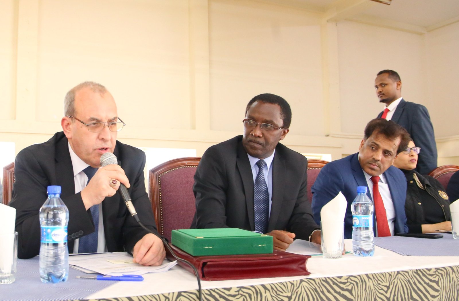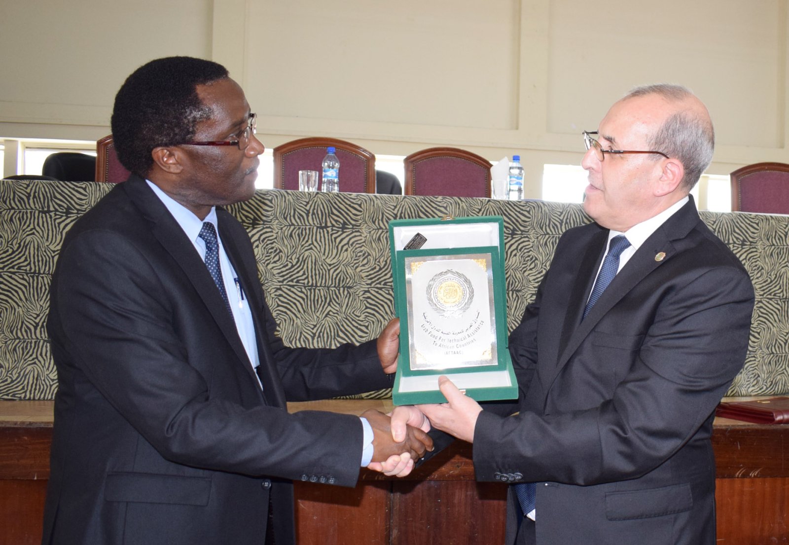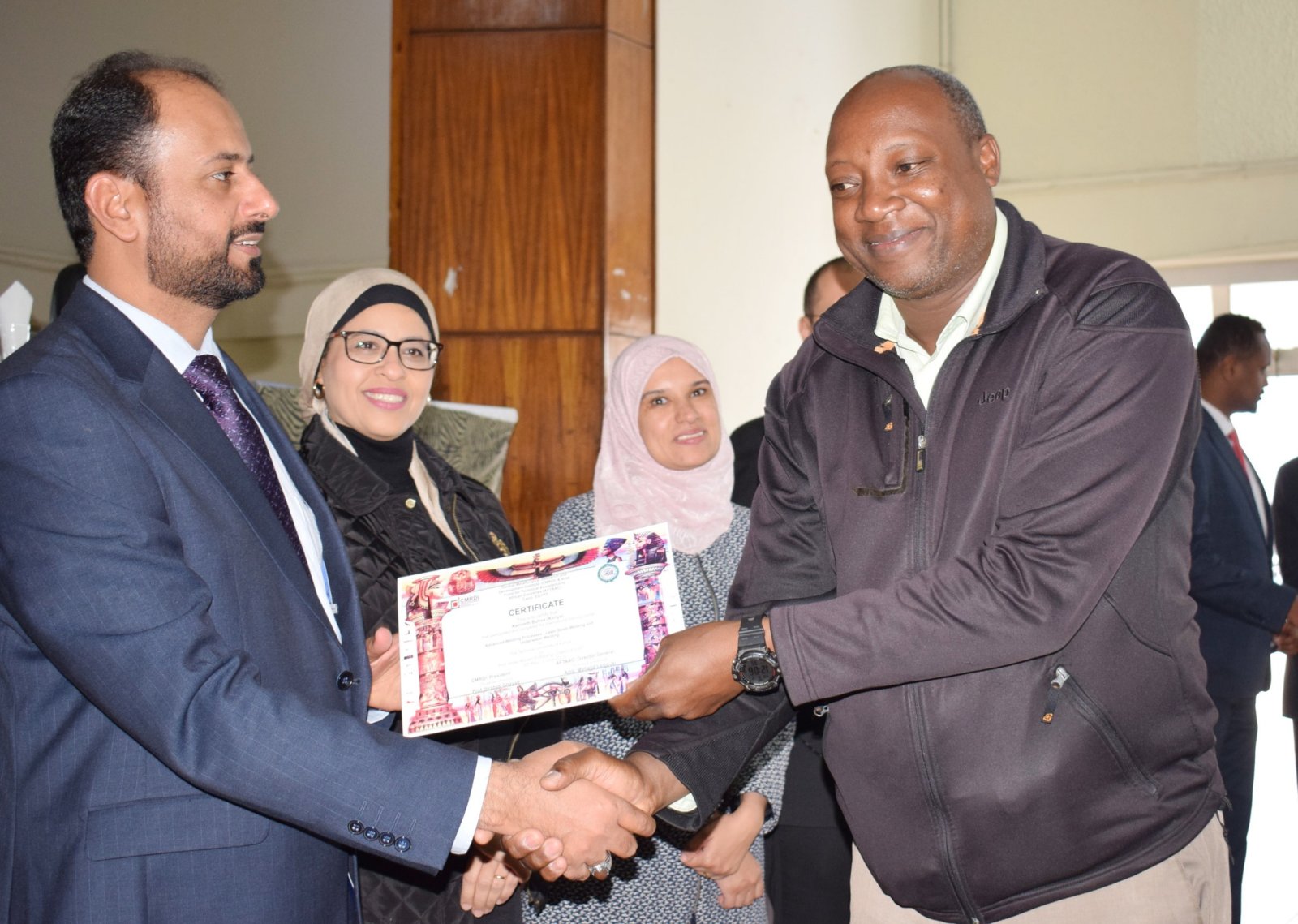 Amb. Mohand Ladjouzi, Assistant Secretary of League of Arab States and the Director General of Arab Fund, Cairo, Egypt led a delegation of the Nations of Arab League including; Egypt, Oman, Somalia, Iran, Algeria, Libya and Saudi Arabia to the closing ceremony that culminates a one-week training on advanced welding such as underseas, pipeline welding. The workshop is part of the programme offered by the Central Metallurgical Research and Development Institute (CMRDI), under the support of the Arab Fund for Technical Assistance to African Countries (AFTAAC). The training participants drawn from the School of Mechanical and Manufacturing Engineering were awarded with certificates. The guests were hosted by VC Prof. Paul Shiundu, DVC Prof. Alfred Orina, Executive Deans and Senior University Staff